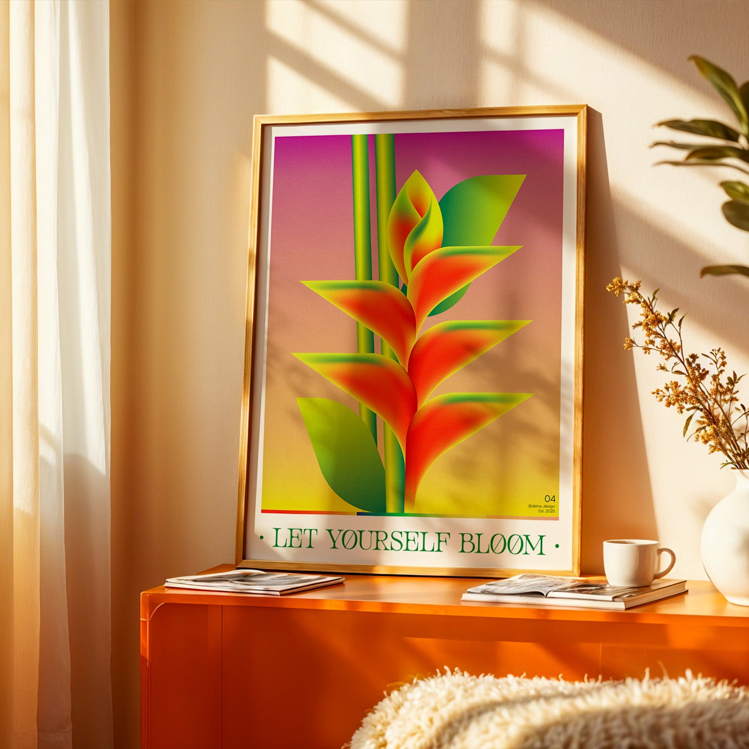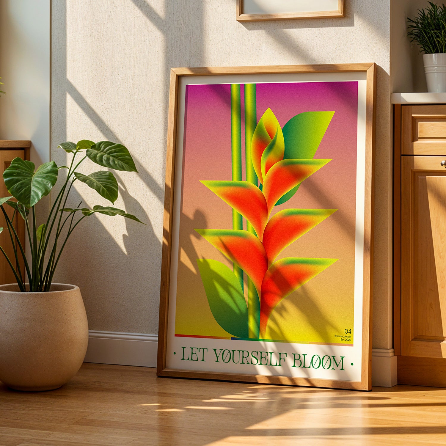 This artwork captures upward movement and natural rhythm through overlapping leaves and elongated forms. The vertical composition and flowing gradients suggest growth in motion, resilience, and forward energy, turning the plant structure into a bold symbol of progress and renewal.